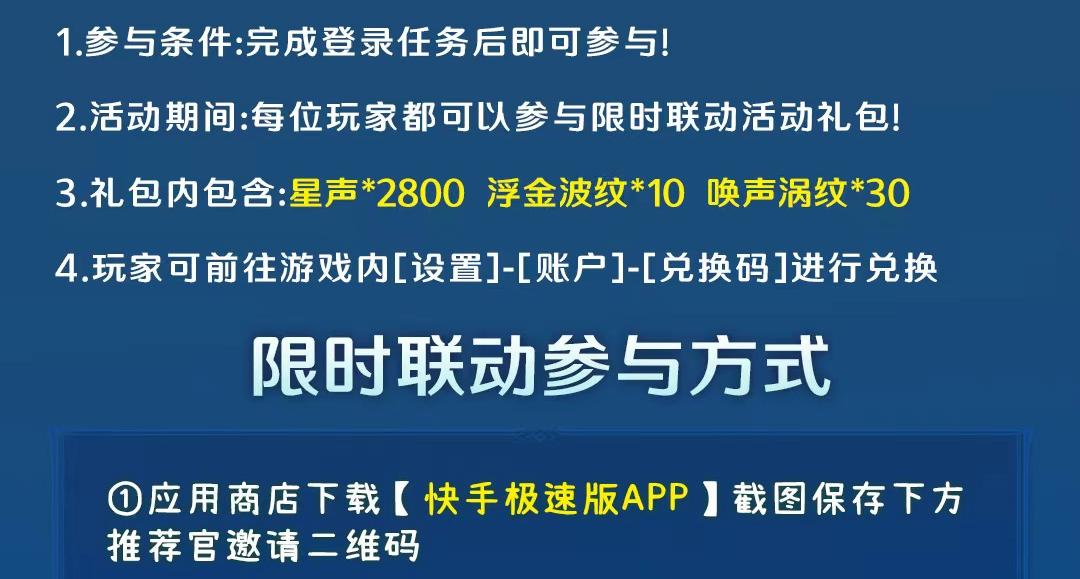 领取失败:请完成以下任务再领取【礼包内含:星声*2800 浮金波纹*10 唤声涡纹*30 】